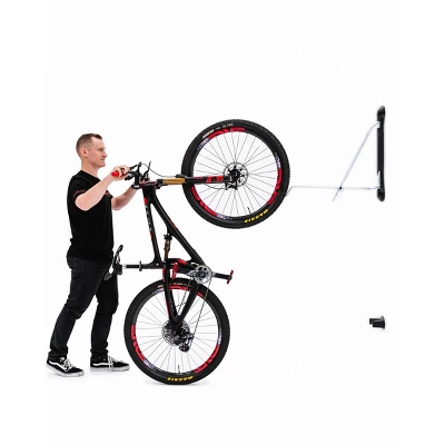 This Mountain Bike Rack from Steadyrack helps you keep your bike safe and your floor clean. This black bike rack allows for hassle-free storage of your bike — it’s perfect for keeping your bike anywhere from an apartment entryway to a garage. Made from steel, this wall-mounted bike rack is a must-have addition, and the durable construction provides sturdy, long-term use. Mount it to the wall near your front door or hang it at the back of your garage — either way, this bike rack makes it easy to store your bicycle.